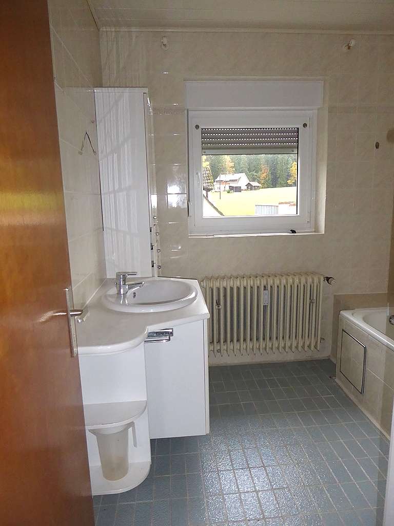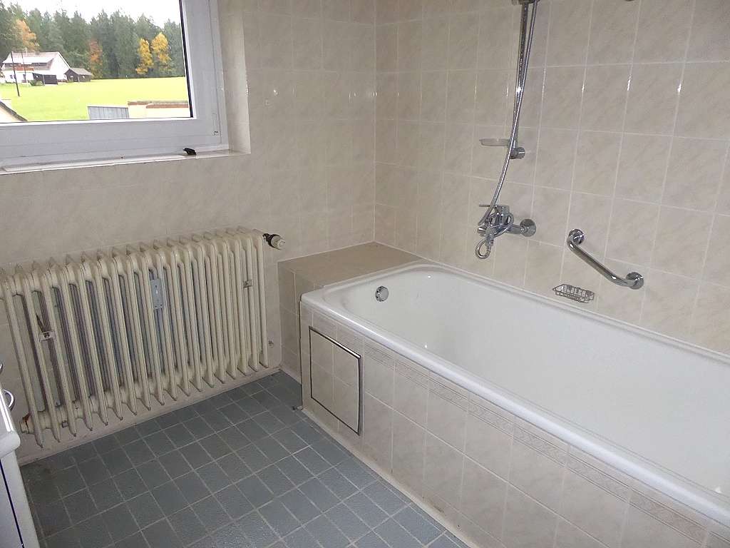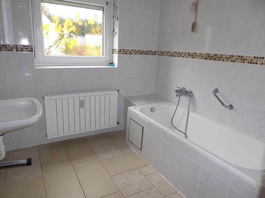 Die Wohnung im Erdgeschoss ist in manchen Bereichen schon etwas moderner gestaltet als die beiden anderen Wohneinheiten. Hier kann eine attraktive Einbauküche übernommen werden. Vom Wohnzimmer aus gelangen Sie auf eine schöne Terrasse und direkt in den Garten. Die sanitären Einrichtungen in den Wohnungen im Erd- und Obergeschoss wurden vor einigen Jahren erneuert und modernisiert. Im Dachgeschoss ist das Badezimmer noch aus dem Gestehungsjahr. Eine begonnene Renovierung wurde nicht zu Ende gebracht.